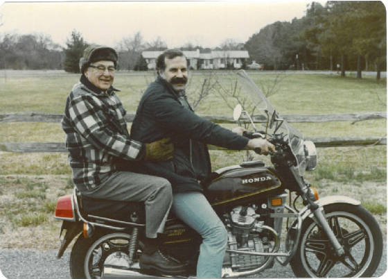 | Bear's father Josh(on R-riding), great grandfather Jacob(on L) Bike was owned by Ed, B's grandad. |